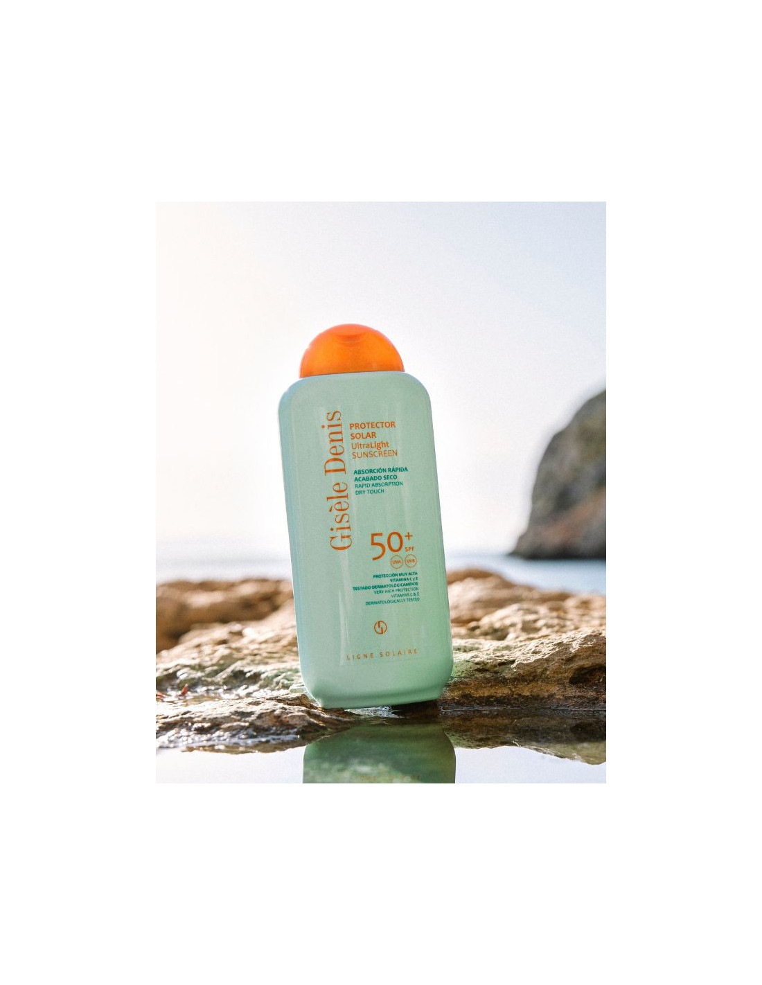 Gisèle Denis UltraLight Sunscreen wurde speziell für einen wirksamen Schutz entwickelt, der sofort einzieht und ein trockenes Finish bietet. Sie enthält Sonnenschutzmittel mit SPF 50+ (sehr hoher Schutz), um einen wirksamen Schutz gegen die schädlichen Auswirkungen von UVA- und UVB-Strahlen zu bieten.