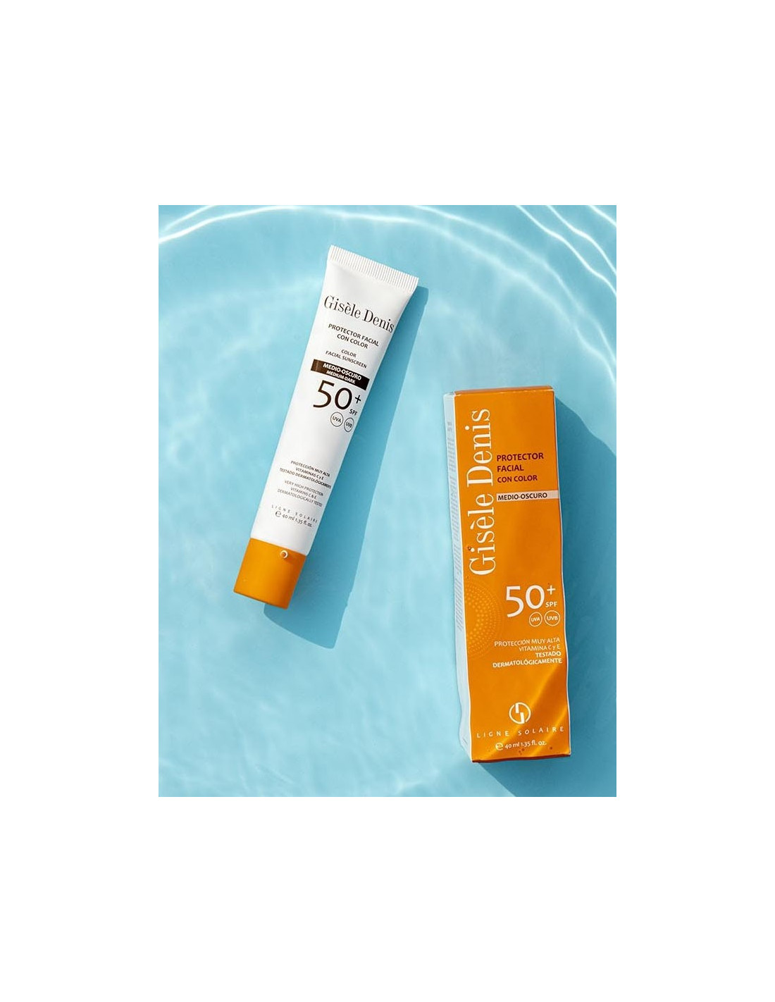 Getöntes Sonnenschutzmittel, das speziell für helle bis mittlere Hauttypen (Fototypen II und III) entwickelt wurde. Sie enthält eine innovative Formel und UV-A- und UV-B-Filter, die Ihrer Haut einen sehr hohen Schutz bieten (SPF50+). Sie enthält Pigmente, die helfen, Hautunebenheiten zu korrigieren, und lässt sich leicht und einfach auftragen. Es vereinheitlicht den Hautton und ermöglicht eine natürliche Bräune auf sichere Weise.