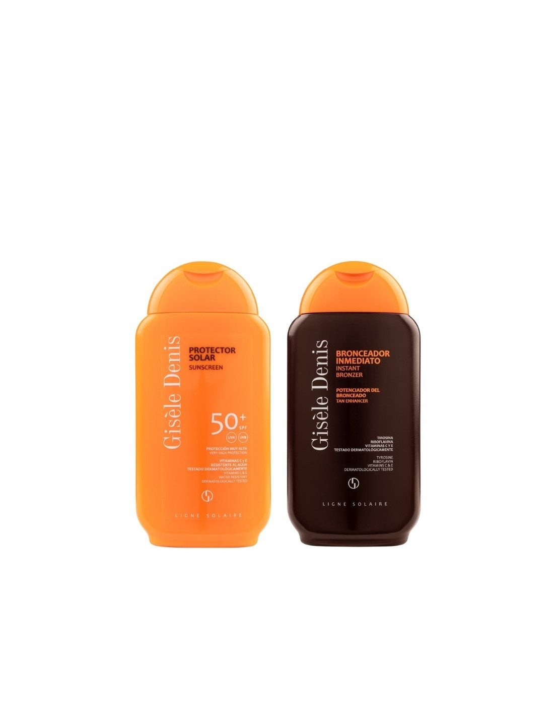 Accelerate and boost your tan this summer with the perfect duo from Gisèle Denis while protecting yourself from the sun with a broad spectrum SPF 50+ sunscreen