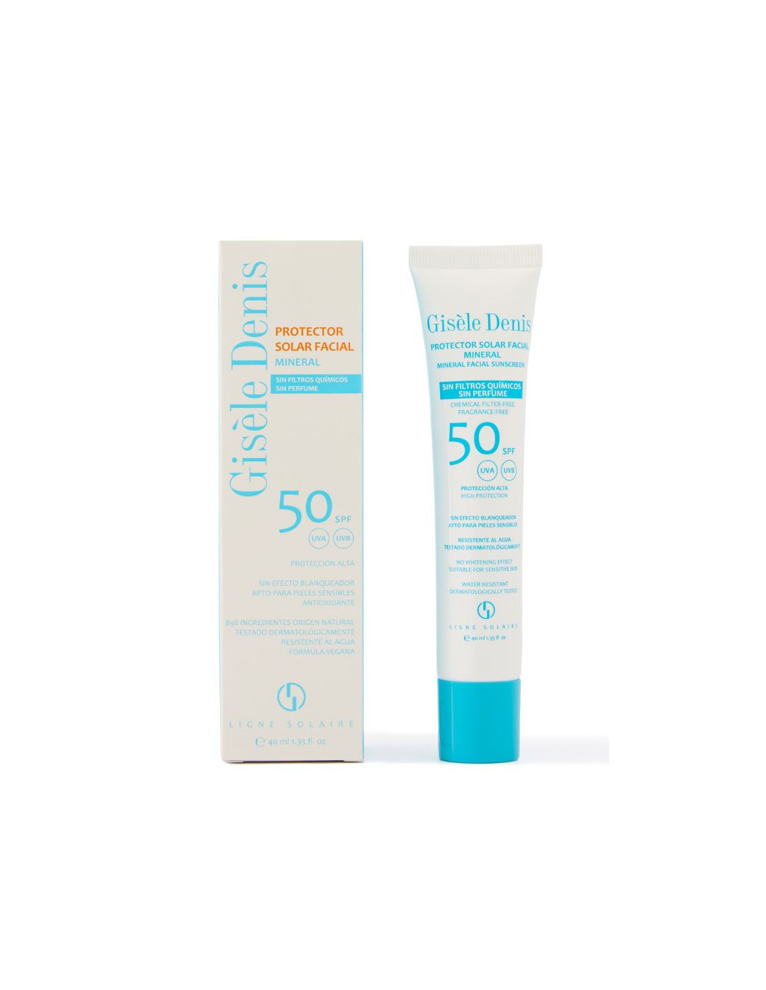 Gisèle Denis presenta este Protector Solar Facial Mineral de amplio espectro y factor de protección alto (FPS 50) formulado con filtros 100% físicos. Es una emulsión fluida de fácil aplicación y rápida absorción sin efecto blanqueante.