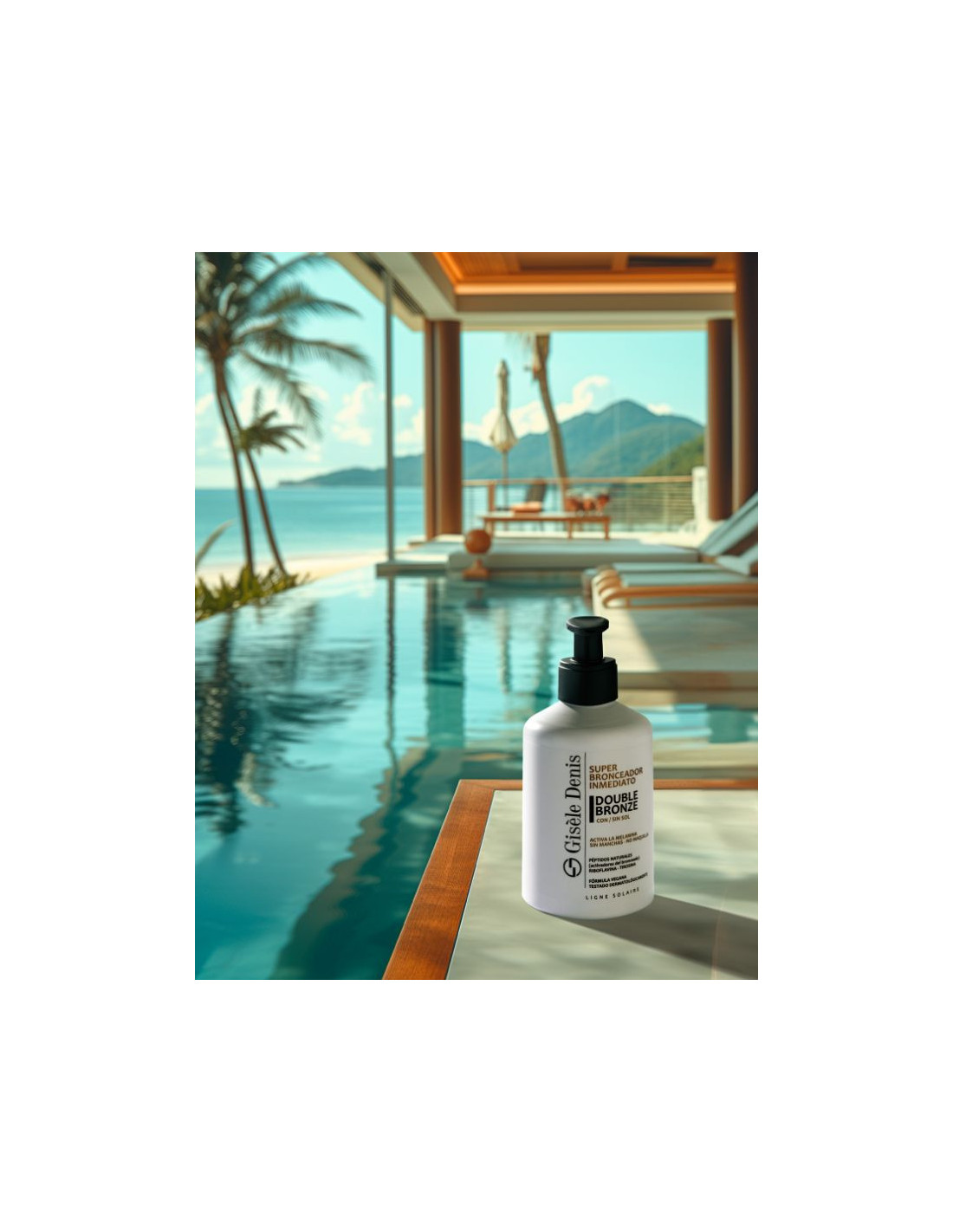 El Super Bronceador Inmediato Double Bronze 250ml de Gisèle Denis cuenta con una innovadora fórmula que genera, acelera y potencia el bronceado de forma natural proporcionando un tono saludable y uniforme. Sólo 15' de sol al día son suficientes para acelerar el proceso natural del bronceado, obteniendo resultados óptimos a partir del 5º día.