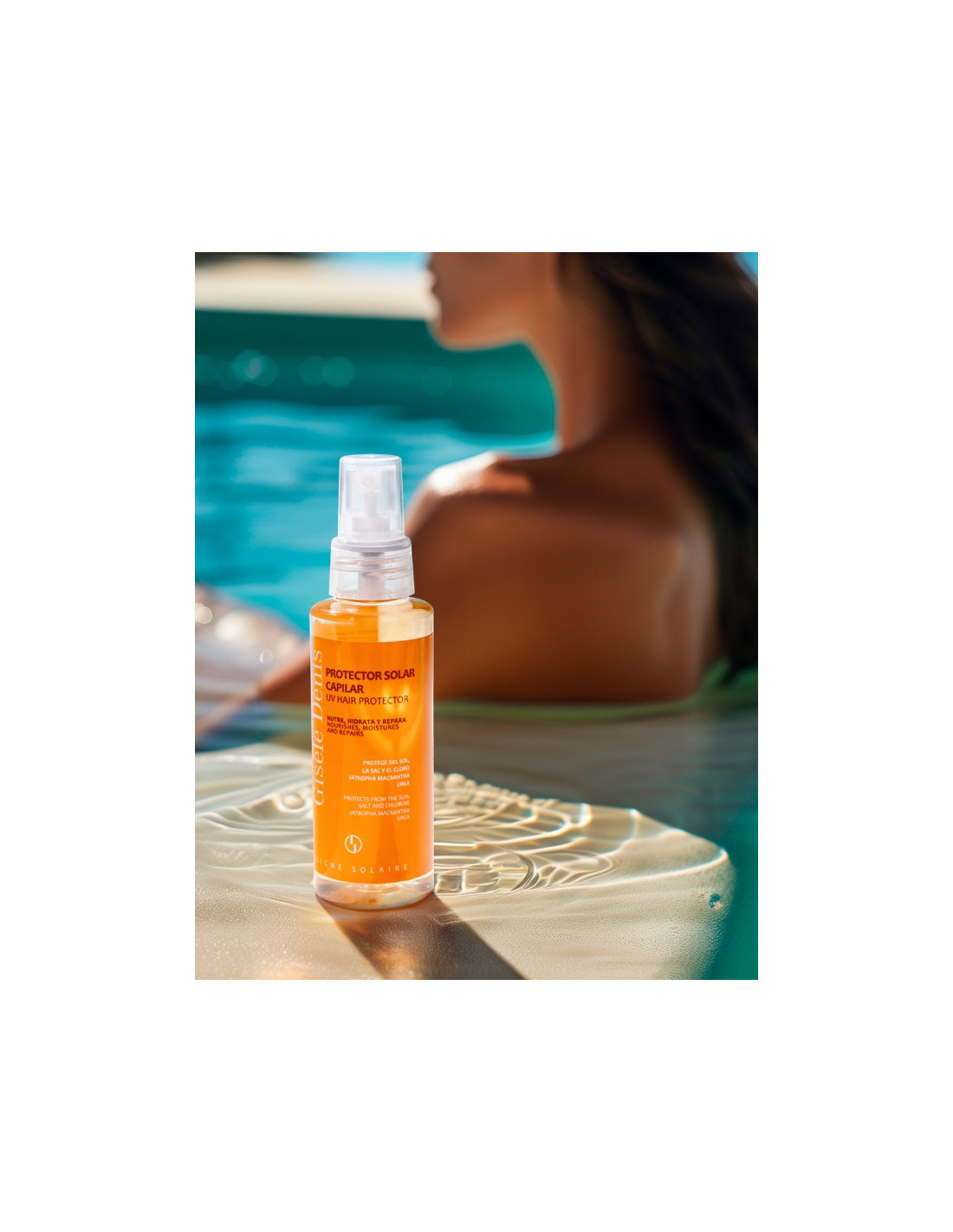 La crema solare per capelli Gisèle Denis protegge i capelli dal sole, dalla salsedine e dal cloro e funge da protettore termico contro asciugacapelli, piastre e arricciacapelli. Inoltre, idrata e sigilla la cuticola del capello, prevenendo la perdita d'acqua per mantenere la sua naturale idratazione e lucentezza.