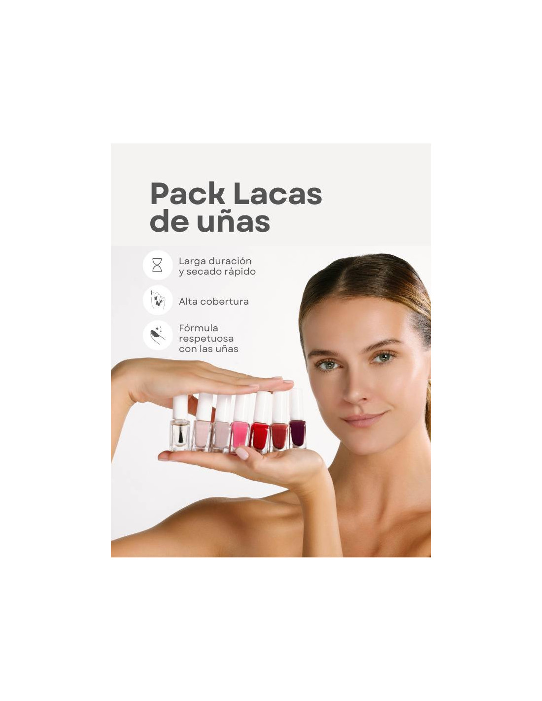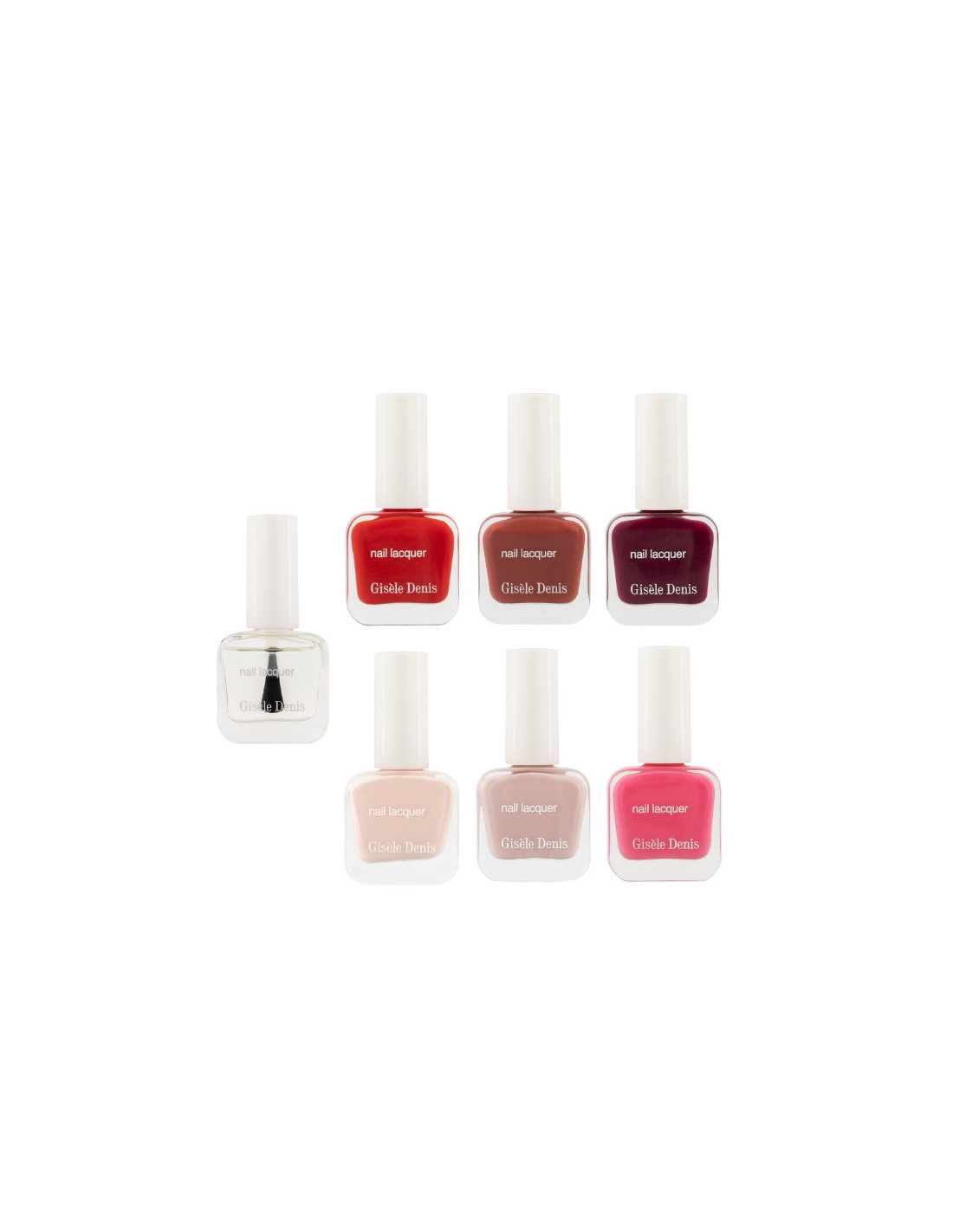 Confezione composta dalla collezione di smalti Gisèle Denis, a lunga durata e ad asciugatura rapida, con l'81,9% di ingredienti naturali. È composta da 6 tonalità che si distinguono per eleganza e raffinatezza insieme al top coat.