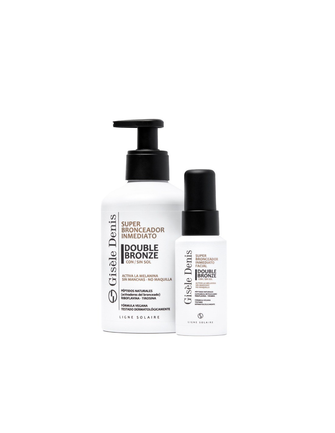 Il Superabbronzante Viso Immediato Gisèle Denis Double Bronze genera ed esalta l'abbronzaturain modo naturale, regalando un tono dorato e uniforme al viso. La sua formula innovativa esercita una doppia azione sui melanociti e incorpora principi attivi che stimolano la sintesi della melanina per un'abbronzatura naturale dopo cinque giorni di utilizzo.
