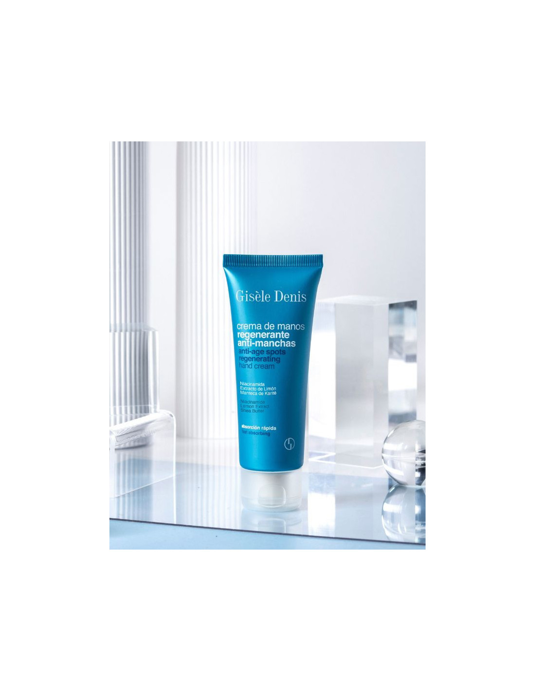 Gisèle Denis Regenerating Anti-Blemish Hand Cream combate firmemente os sinais visíveis do envelhecimento da pele, tais como o aparecimento de manchas escuras, secura e perda de luminosidade.