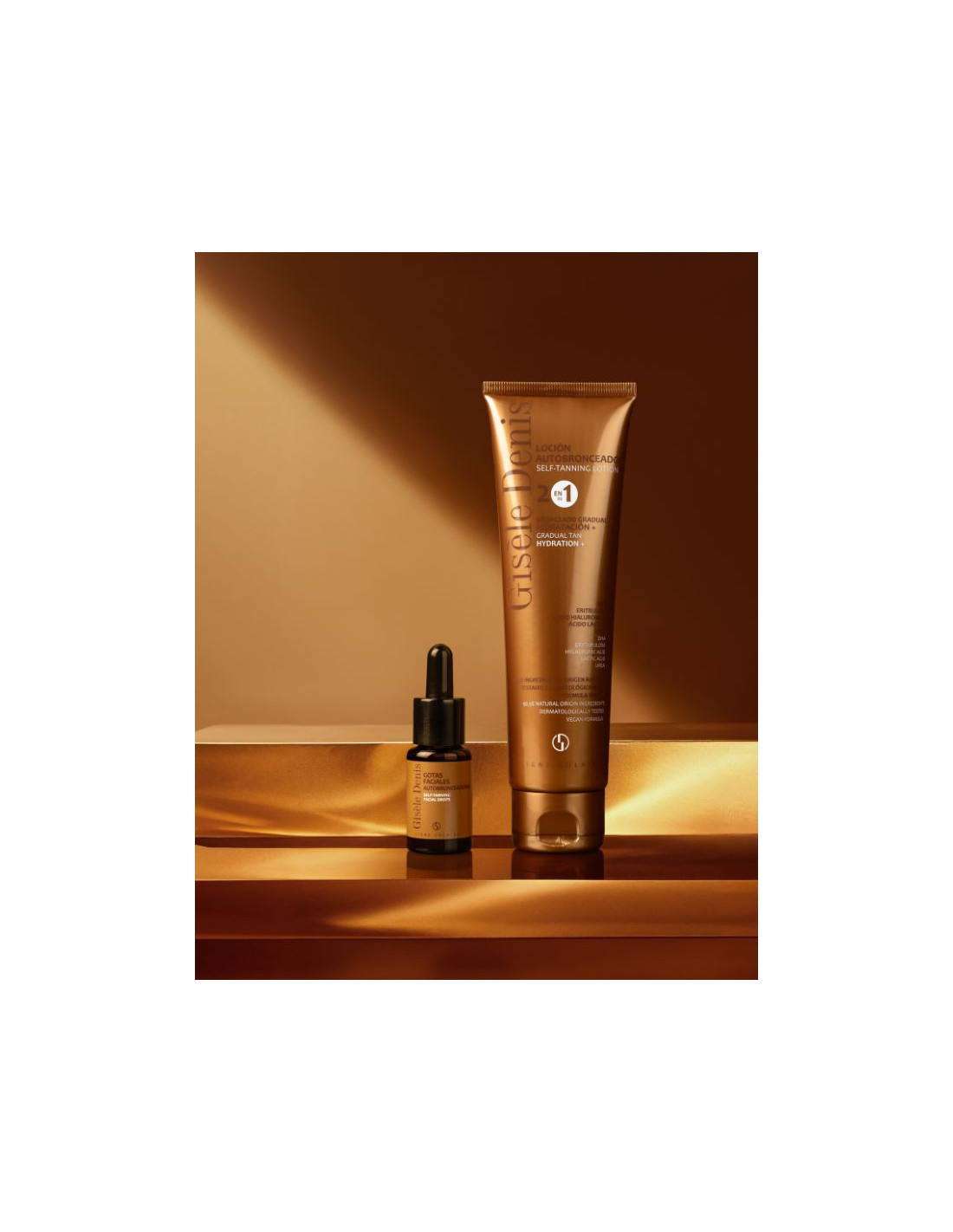 As Gotas Faciais Autobronzeadoras Gisèle Denis proporcionam um bronzeado gradual, uniforme e duradouro. A sua fórmula combina DHA e Eritrulose com um poderoso ingrediente ativo hidratante: o Ácido Hialurónico, que reduz o aparecimento de linhas e rugas, para dar à pele um aspeto mais jovem. A inclusão de um formato conta-gotas torna a aplicação muito fácil, uma vez que pode ser aplicado diretamente no rosto ou misturando as gotas com o seu creme ou sérum habitual. O bronzeado é progressivo, consoante a quantidade de gotas que utilizar em cada aplicação.