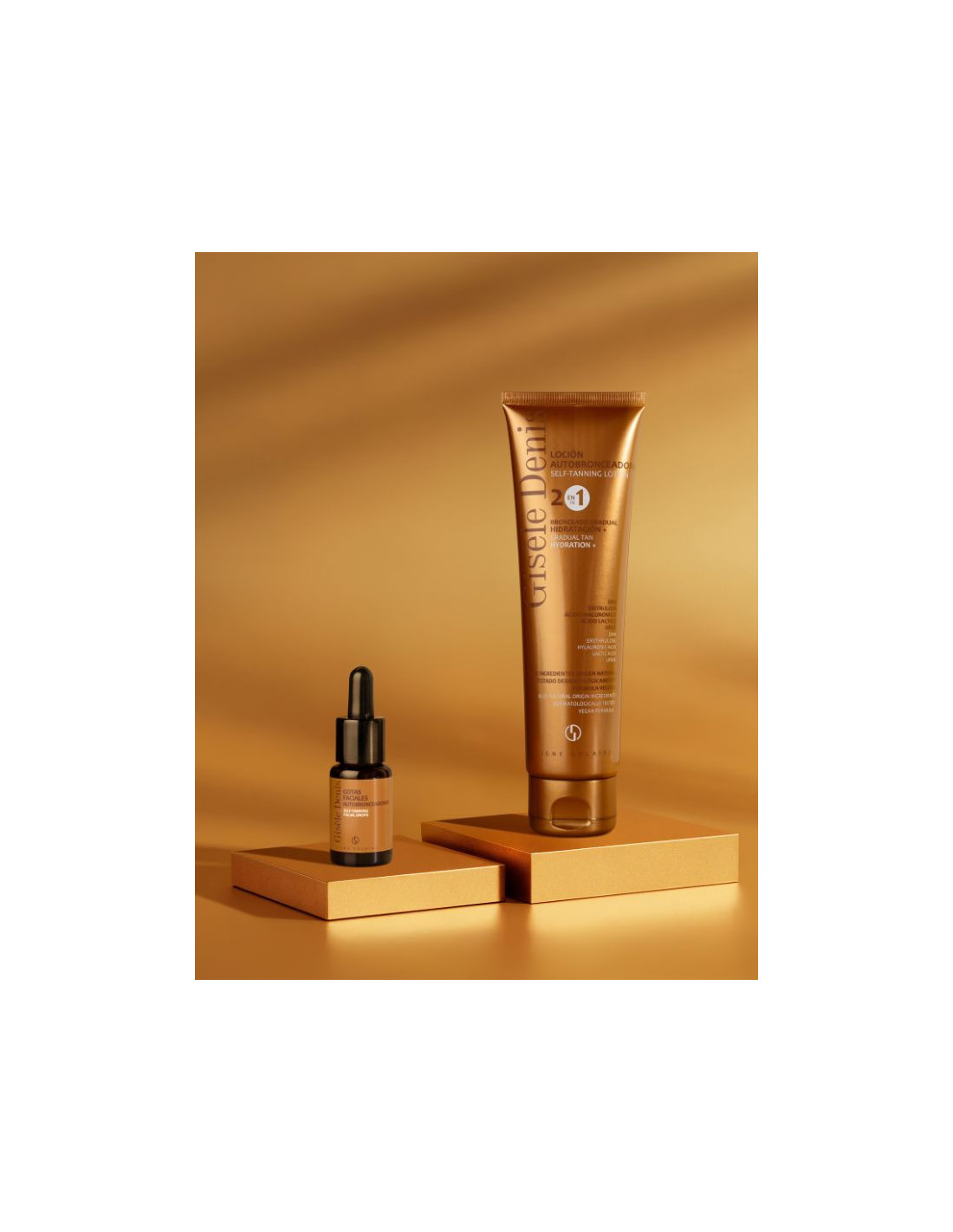 Com este pack, o seu bronzeado não dependerá do tempo ou do facto de ter apanhado sol ou não. O Pacote de Bronzeamento Integral inclui dois produtos autobronzeadores (facial e corporal), que se tornarão os seus essenciais para um bronzeado natural, uniforme e duradouro (sem tons alaranjados). Com Gisèle Denis, obterá um bronzeado à sua medida em qualquer estação do ano.